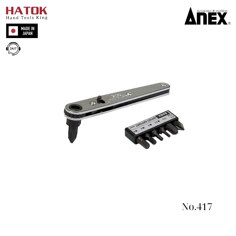 Bộ tay vặn và mũi vít dùng trong góc hẹp Anex No.417 Nhật Bản