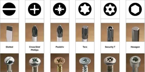 Đầu tô vít có nhiều kiểu, nhưng phổ biến nhất gồm:
