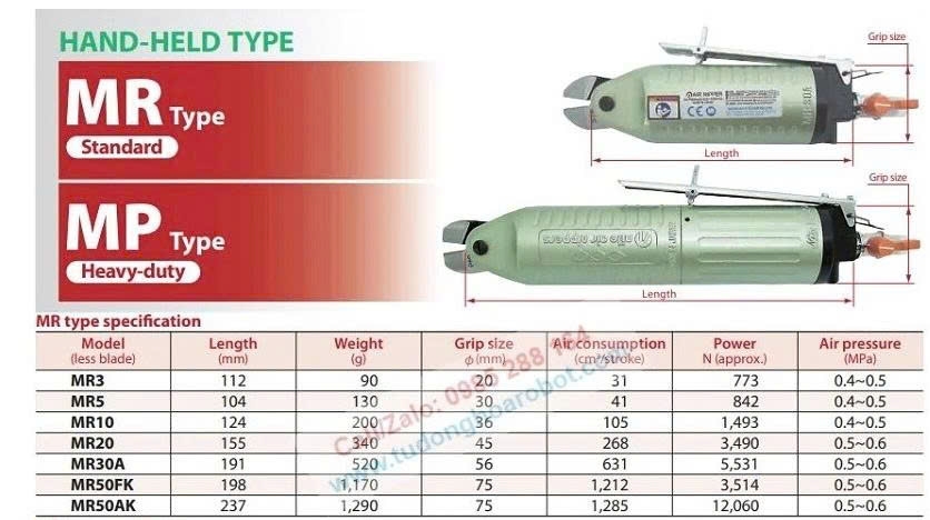 ● Áp suất không khí làm việc (MPa): 0,4 đến 0,5