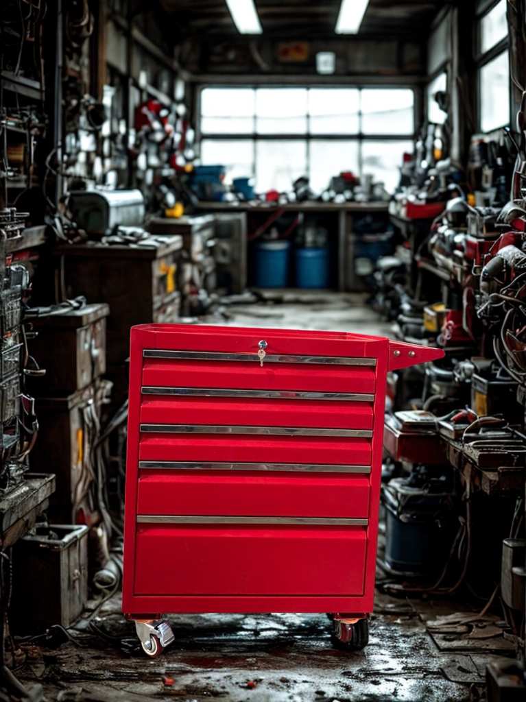 Thiết kế hiện đại, màu đỏ nổi bật, tăng tính chuyên nghiệp cho xưởng hoặc gara.