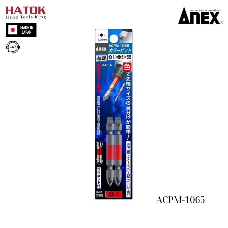Vỉ 2 mũi vít 2 đầu có từ tính Anex ACPM-1065 Nhật Bản
